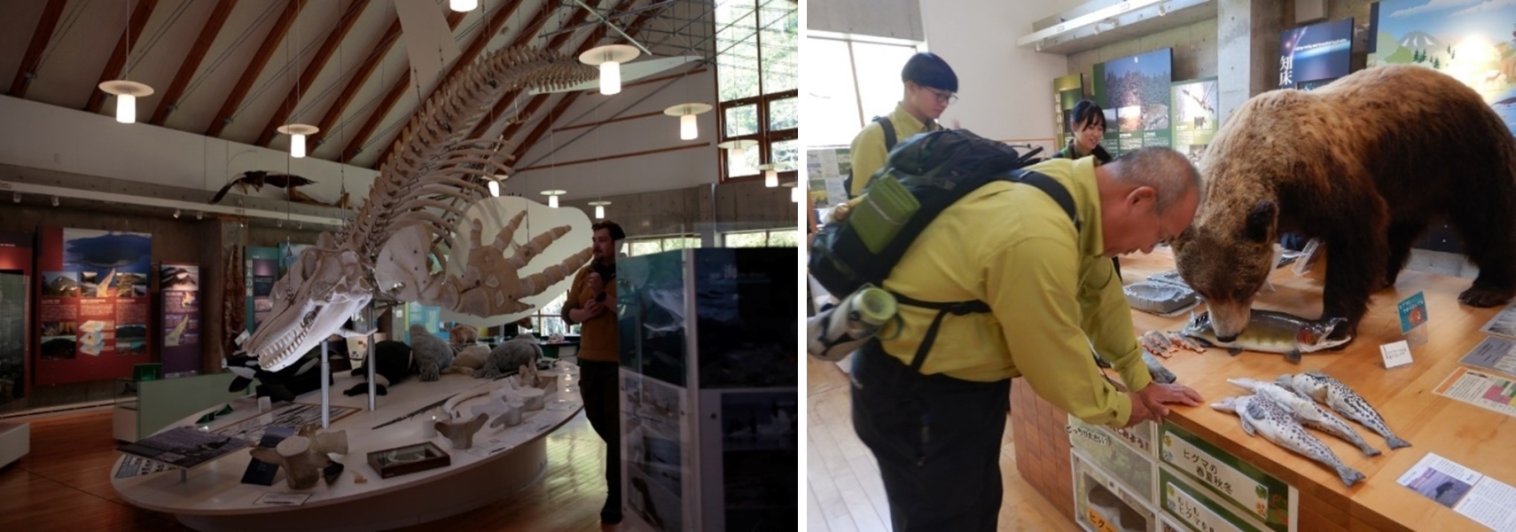 館内はシャチの骨格標本や知床で生息している野生生物のはく製があり大迫力ですし、トレイルを更に楽しむことができる自然情報・町の情報等も展示されています。