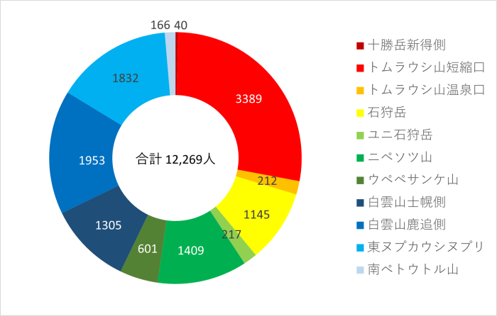 東大雪地域の中では、トムラウシ山の短縮コースの利用が3,389人で最多でした。