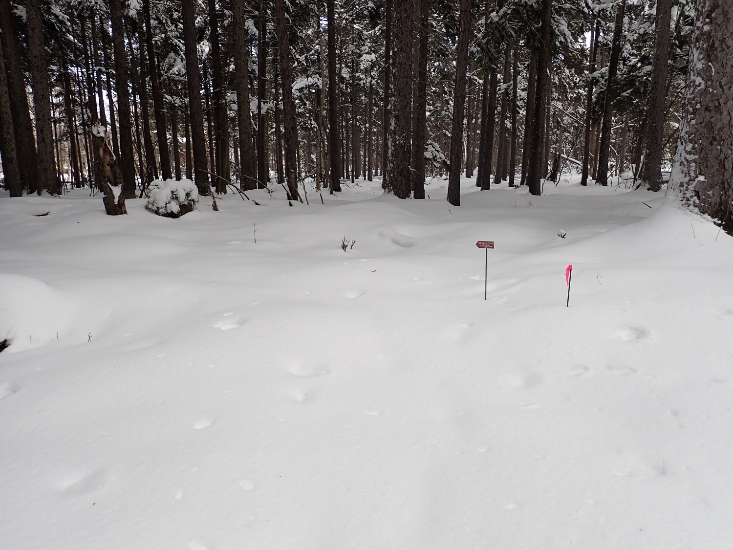 アカエゾマツの森は雪がたくさん積もると散策路が分かりにくくなるため、今年はパークボランティアさんとともに道迷い防止の道標を作成して設置しました。