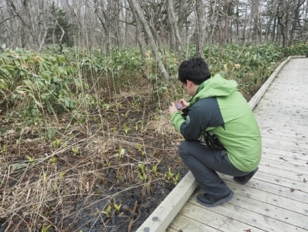 写真はありませんが傍らではエゾノリュウキンカも芽吹き始めており、湿原が花々に彩られる季節もすぐそこまで来ているように感じました。