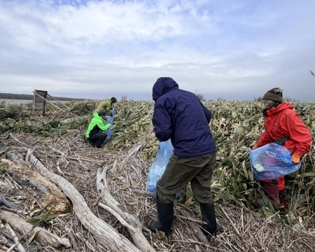 幌延町にあるペンケ沼は水鳥の貴重な休憩地点として重要な役割を担っており、毎年この時期には雪解け後の増水により多くのごみが打ちあがっています。