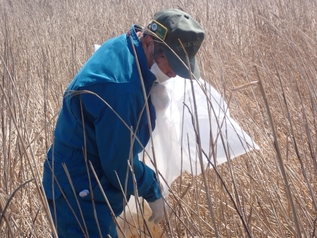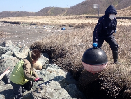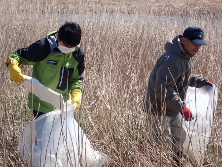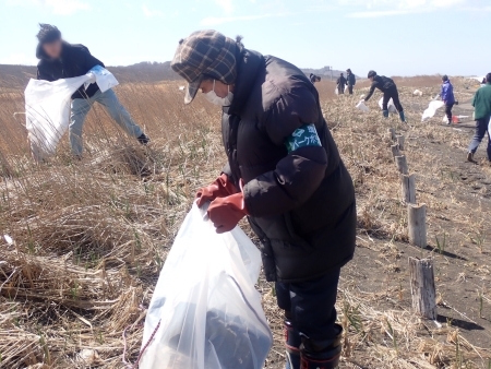 雪解けとともに沼の水際 に流れ着いて打ち上げられたごみが今年もたくさんあり、気が付くとすぐに袋がいっぱいになりました。